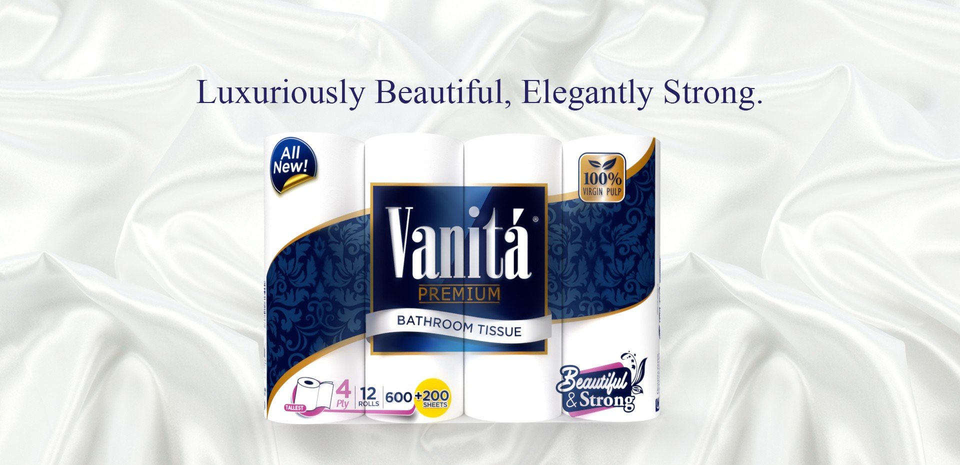 Vanità Premium is the most luxurious tissue that is made with the choicest 100% virgin fiber assuring you the most hypo-allergenic, hygienic, and softest quality that you can get. Luxuriously Beautiful, Elegantly Strong.